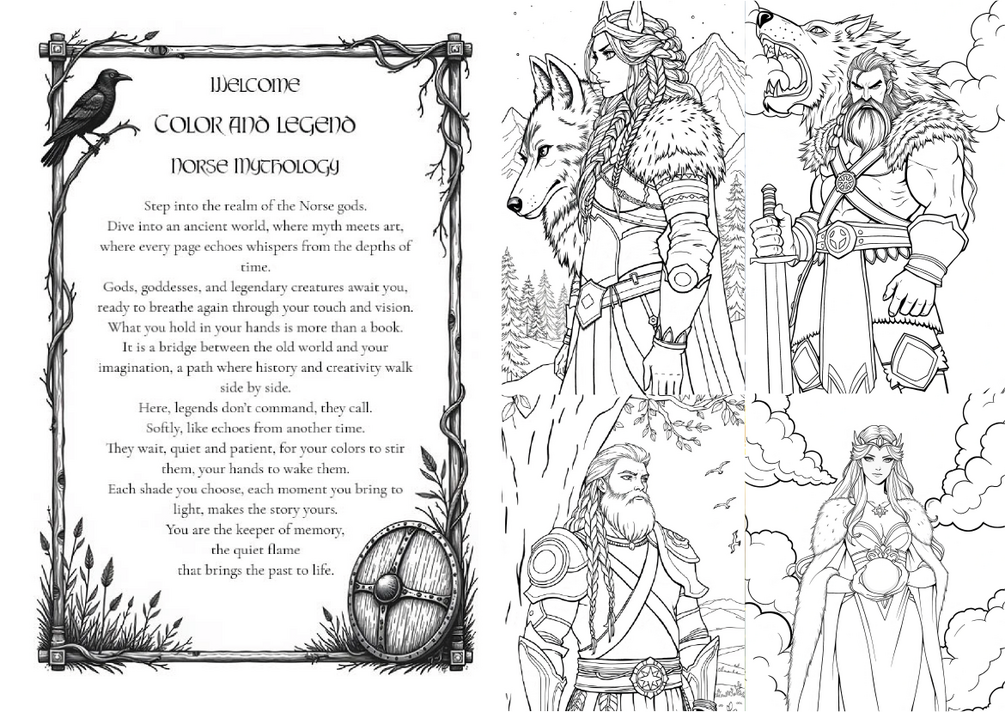 COLOR AND LEGEND Norse Mythology Coloring Book . Eng black and white edition