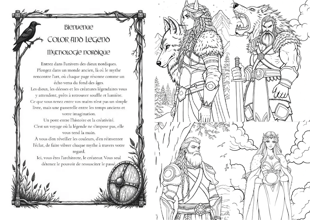 COLOR AND LEGEND mythologie nordique Livre de coloriage . FR edition noir et blanc